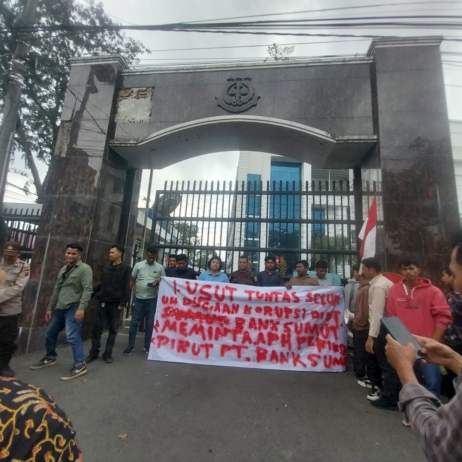 MEDAN,-Puluhan Mahasiswa yang tergabung dalam Satuan Mahasiswa Laskar Merah Putih Perjuangan Sumatera Utara ( Satma LMPP Sumut ) melakukan aksi unjuk rasa di Kejaksaan Tinggi Sumatera Utara jl. A.H Nasution dan Kantor Pusat Bank Sumut jl. Imam Bonjol Medan terkait dugaan Korupsi di tubuh PT. Bank Sumut. Jumat,13/12/24.